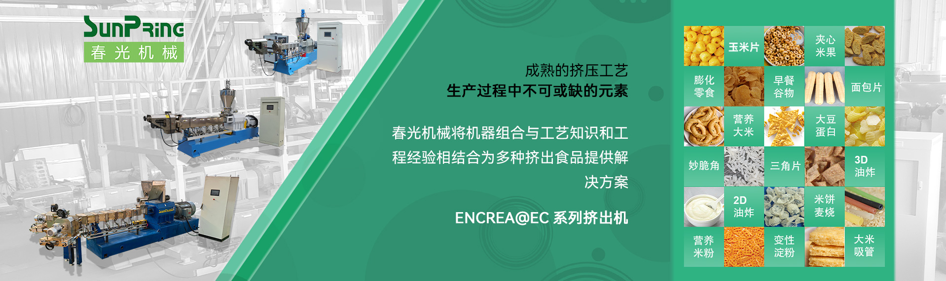 濟(jì)南春光機(jī)械設(shè)備有限公司是專(zhuān)業(yè)從事雙螺桿食品膨化機(jī)的新興企業(yè)。我公司匯聚了行業(yè)工作十?dāng)?shù)年的專(zhuān)家隊(duì)伍,不僅在擠壓技術(shù)研究方面傾盡全力,更努力在食品工藝方面不斷探索,以便客戶(hù)生產(chǎn)出市場(chǎng)領(lǐng)先食品。