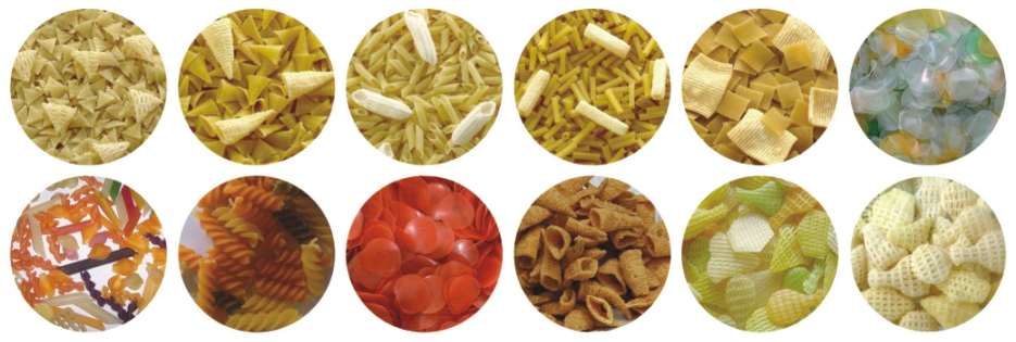 3. 產(chǎn)品: 貝殼、螺旋、方管、圓管、藕片等不同形狀油炸休閑小食品